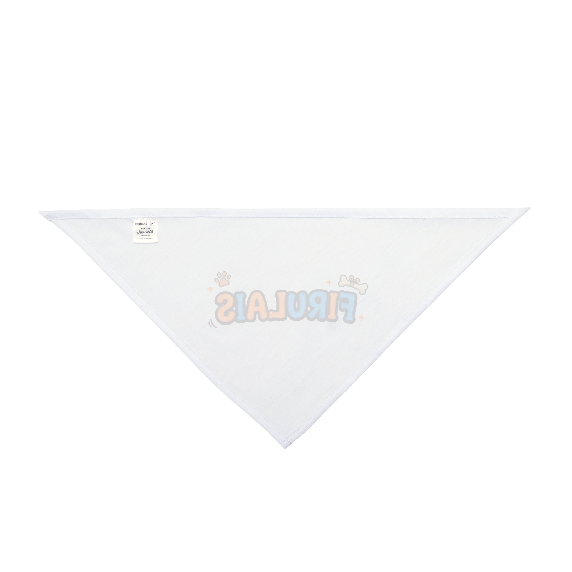 A cheerful, lightweight bandana that adds playful personality to any pup’s look. The soft, quick-drying polyester holds a bright, single-sided print of bold, bubbly lettering and tiny paw and bone accents — a small badge of fun that sits comfortably around the neck. Hemmed edges and a sewn-in label give it a finished, durable feel, while two size options suit smaller dogs and larger companions alike. Wear it on daily walks, at casual meetups, or during lively backyard gatherings to let your dog’s character shine through in a simple, joyful way.